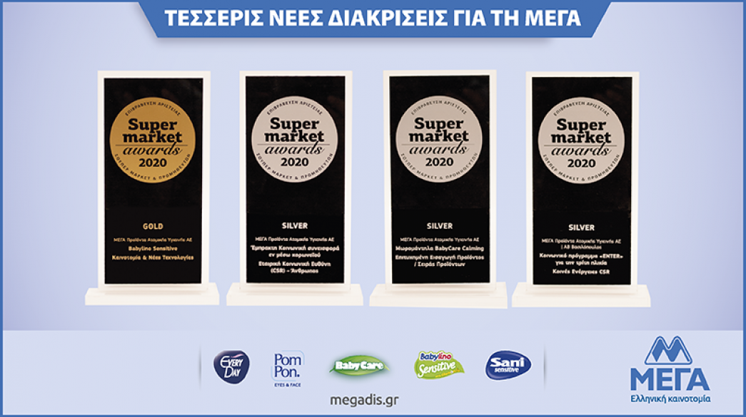 Για την καινοτομία, τα προϊόντα και την εταιρική της υπευθυνότητα διακρίθηκε για 6η συνεχή χρονιά η ΜΕΓΑ Προϊόντα Ατομικής Υγιεινής Α.Ε. στα Supermarket Awards, τα βραβεία που αναδεικνύουν και επιβραβεύουν τις βέλτιστες επιχειρηματικές δραστηριότητες και πρακτικές στον χώρο του λιανεμπορίου τροφίμων.