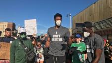 ΔΙΕΘΝΗ Ο Giannis σε διαδήλωση κατά του ρατσισμού O Αντετοκούνμπο φορώντας προστατευτική μάσκα, γάντια και μία μπλούζα με το μήνυμα «δεν μπορώ να αναπνεύσω», τίμησε τον Τζορτζ Φλόϊντ, ο οποίος δολοφονήθηκε προ ημερών στην Μινεάπολη. 07 Ιουν 2020 14:45