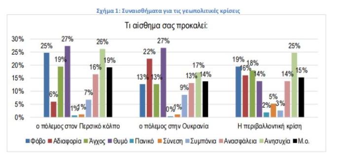 Όπως καταγράφεται στο σχήμα 1, τα διεθνή γεγονότα (πόλεμοι και περιβαλλοντική κρίση) προκαλούν έντονη συναισθηματική επιβάρυνση στους καταναλωτές: