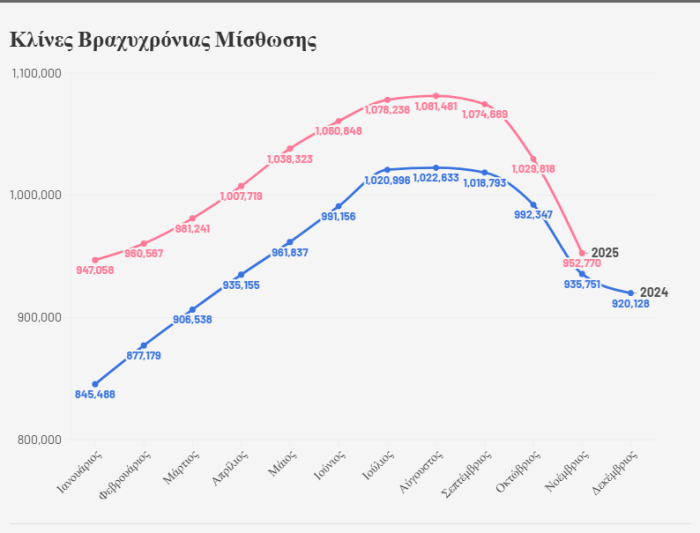 Πάντως, αξίζει να αναφερθεί πως παρά τη μείωση, παρέμειναν υψηλότερες κατά 17.019, έναντι των 992.347 του Νοεμβρίου 2024.