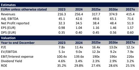 Αν και φέτος φαίνεται πως έχει επηρεαστεί από τα αυξημένα κόστη και το γεγονός ότι δεν πρόλαβε να τα μετακυλίσει, η χρονιά θα έχει καλή αύξηση κερδών και θα φτάσουν στα 38,4 εκατ. ευρώ, ενώ το 2027 θα εκτιναχθούν στα 51,9 εκατ. ευρώ.