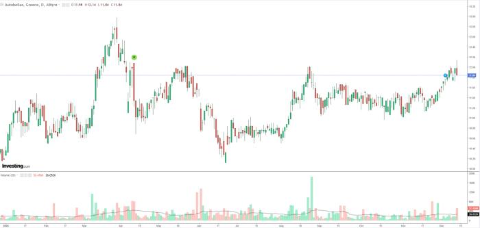 Στις τελευταίες συνεδριάσεις βλέπουμε μία καλύτερη κίνηση αλλά εκεί γύρω από τα 12 ευρώ υπάρχουν σημαντικοί πωλητές. Χθες έκανε υψηλότερο όγκο από τον συνηθισμένο της και αν καταφέρουν να μαζέψουν την προσφορά θα μπορούσε να πάει προς τα υψηλά της που ήταν στα 13 ευρώ.