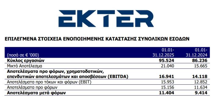 Ο τζίρος το 2026 αναμένεται στα 390 εκατ. ευρώ από 329 εκατ. ευρώ το 2026 και τα κέρδη προ φόρων και τόκων στα 60 εκατ. ευρώ.