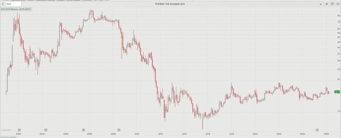 Η πορεία της μετοχης της Τράπεζας της Ελλάδος, Ιανουάριος 1999 - Απρίλιος 2026