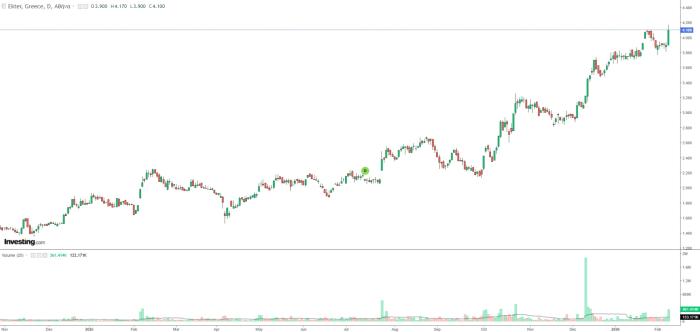 Τον όγκο που έχει κάνει από την αρχή της χρονιάς, άλλες τον κάνουν σε μια μέρα. Πάντως η άνοδος από την αρχή του έτους είναι πάνω από 20%.