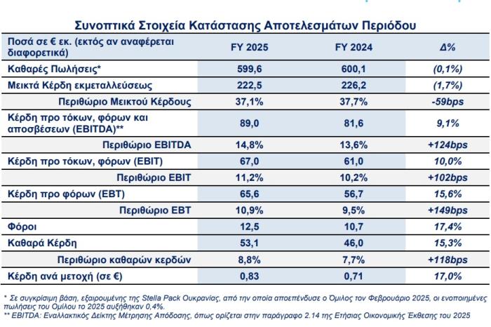 Το 2026 περιμένει πωλήσεις 620 εκατ. ευρώ αυξημένες κατά 3,4%, EBITDA 97 εκατ. ευρώ ενισχυμένα 9% και ελεύθερες ταμειακές ροές 63 εκατ. ευρώ με επενδύσεις 20 εκατ. ευρώ.