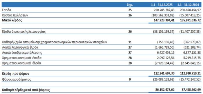 ΟΛΠ: Το τελευταίο τρίμηνο του 2025 δεν είχε την πορεία του αντίστοιχου του 2024 με αποτέλεσμα στο σύνολο της χρήσης τα καθαρά κέρδη να μειωθούν οριακά και να διαμορφωθούν στα 86,2 εκατ. ευρώ. Μικρή αύξηση είχαν τα EBITDA.