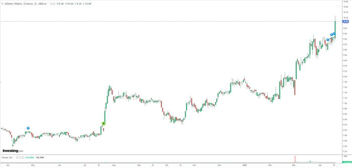Λόγω της κίνησης της ΕΥΔΑΠ είδαμε και άνοδο από την ΕΥΑΘ, η οποία έχει μείνει αρκετά πίσω, αλλά αυτή δεν έχει λάβει αύξηση τιμολογίων.