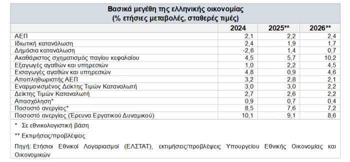 Επιτάχυνση της ανάπτυξης στο +2,4% προβλέπει για το 2026 ο Προϋπολογισμός με ώθηση από την άνοδο των επενδύσεων. Περαιτέρω μείωση του χρέους και μείωση ανεργίας. Σε εφαρμογή οι φορολογικές αλλαγές που ανακοινώθηκαν στη ΔΕΘ.