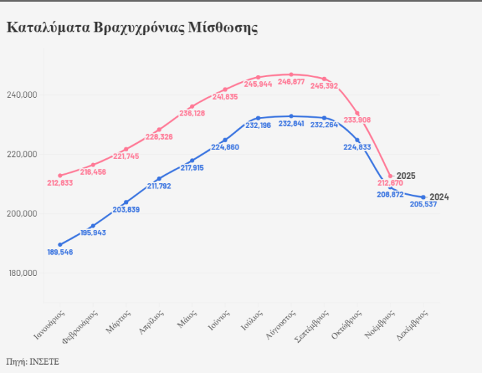 Πάντως, αξίζει να αναφερθεί πως παρά τη μείωση, παρέμειναν υψηλότερες κατά 17.019, έναντι των 992.347 του Νοεμβρίου 2024.
