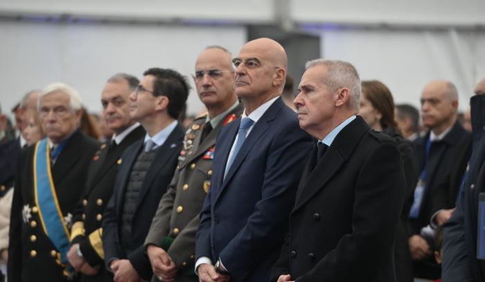 Ο υπ. Εθνικής Άμυνας, Νίκος Δένδιας στον χαιρετισμό του, τόνισε ότι είναι μια πολύ σημαντική στιγμή η ύψωση της ελληνικής σημαίας στην φρεγάτα «Κίμων». «Ο Κίμων επιστρέφει στη Μεσόγειο για να υποδηλώσει τη ναυτική ισχύ της Ελλάδας. Ενισχύεται η δυνατότητα αποτροπής μας, η δυνατότητα να υπερασπίσουμε τα κυριαρχικά μας δικαιώματα», επισήμανε ο υπουργός και τόνισε ότι «η ένταξη του "Κίμωνα" δημιουργεί το πιο ισχυρό Πολεμικό Ναυτικό που είχαμε ποτέ».